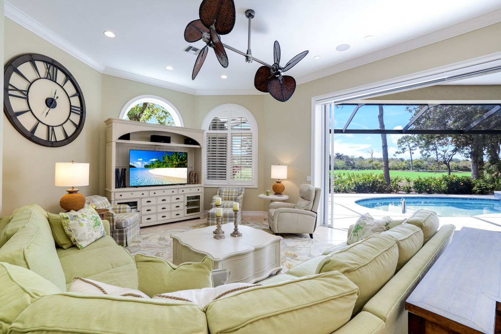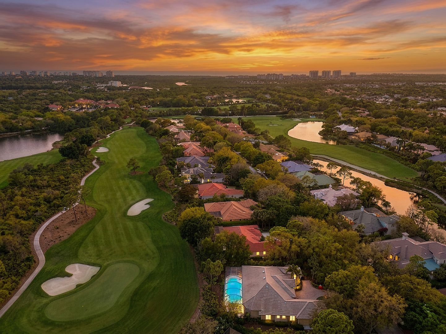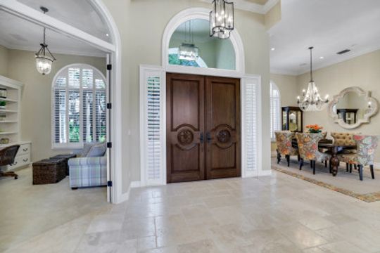 The Three Ls of Real Estate: Location, Lot, Layout ... Perfectly positioned on a QUIET, tree-lined CUL-DE-SAC STREET in the heart of the neighborhood, this exceptional residence is set on an oversized, nearly half-acre homesite, enjoying a coveted SOUTHERN exposure and breathtaking GOLF COURSE VIEWS, beautifully framed by a natural preserve. The property is high and dry, located in a NO-FLOOD-hazard ZONE. COMPLETELY RENOVATED from top to bottom, this sprawling RANCH-STYLE HOME has been thoughtfully upgraded to today’s standards. Its OPEN-CONCEPT great room/family room design CREATES AN INVITING FLOW, encompassing three spacious bedroom suites, four full baths, and two versatile dens. All bedrooms with private en-suite baths and walk-in closets; the guest bath doubles as a pool bath. The two dens provide flexibility as a study, home office, or additional sleeping space. Light-filled interiors are enhanced by picture windows with transoms and ten-foot sliding glass doors, creating a seamless connection between indoor and outdoor living. Reimagined in a sophisticated transitional style, the home showcases timeless details such as rich crown molding, elevated ceilings, and designer fixtures. A neutral palette highlights the finest finishes, including intricate stone flooring, quartzite and granite countertops, and bespoke soft-close wood cabinetry. At the heart of the home, the chef’s kitchen strikes a perfect balance between style and functionality. A large island with counter seating anchors the room, surrounded by custom wood cabinetry with pull-out shelving and lighted glass-front upper cabinets. Top-tier appliances include a 6-burner gas cooktop w/ pot filler, double ovens, and a warming drawer. A second dishwasher in the remodeled utility room offers added convenience. Ideal for entertaining, the fully equipped two-sided bar features illuminated display cabinetry, a wine cooler, beverage refrigerator, and ice maker. Embracing a true indoor-outdoor lifestyle, disappearing glass doors open to an expansive lanai—nearly 2,500 SQ. FT. of OUTDOOR LIVING space. Here, spectacular golf course views and vibrant sunset skies create a daily backdrop. The fully renovated outdoors includes a saltwater pool and spa, both gas heated, a poolside kitchen, shell-stone decking, and generous areas for shaded relaxation and sun-filled lounging, all within a new panoramic screen enclosure. The full-size 3-car garage features a side-entry design, so the home’s striking mahogany double entry doors take center stage. Recent HURRICANE-CODE UPGRADES include a flat-tile roof, impact-resistant windows throughout, and motorized Storm Catcher roll-downs on the lanai. This listing offers the option for IMMEDIATE GOLF membership at the prestigious Collier's Reserve CC known for its Arthur Hills eco-conscious golf course, as well as tennis, pickleball, fitness & wellness programs, bocce, kayaking, and an active social scene with both casual and fine dining.